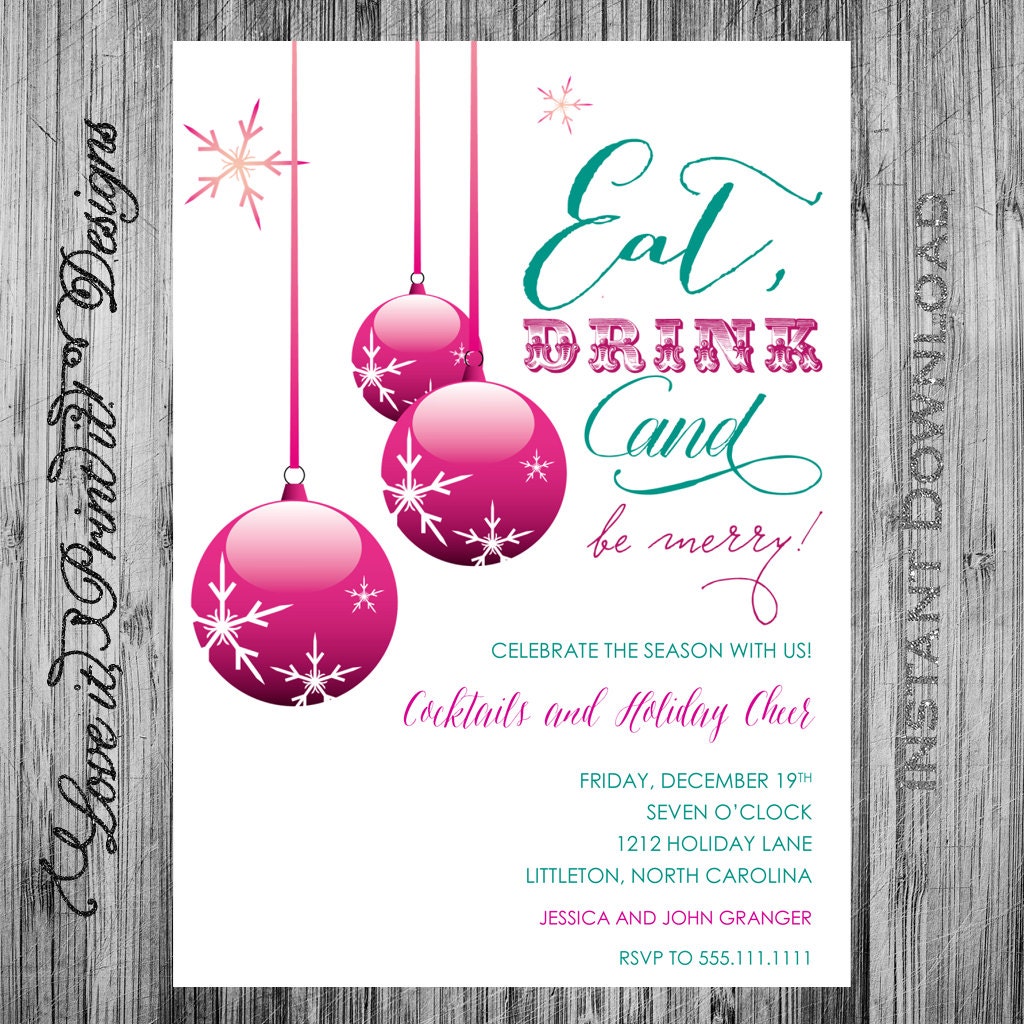 holiday invitation digital template diy eat drink - Image Credit : www.etsy.com