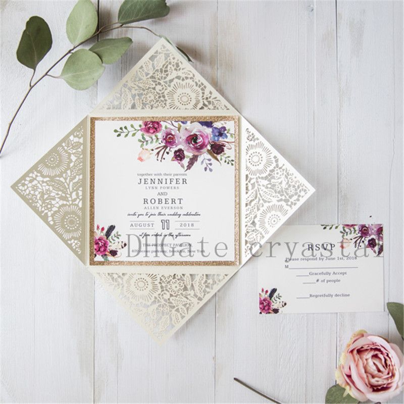 bohemian floral glittery laser cut wedding invitation - Image Credit : www.dhgate.com