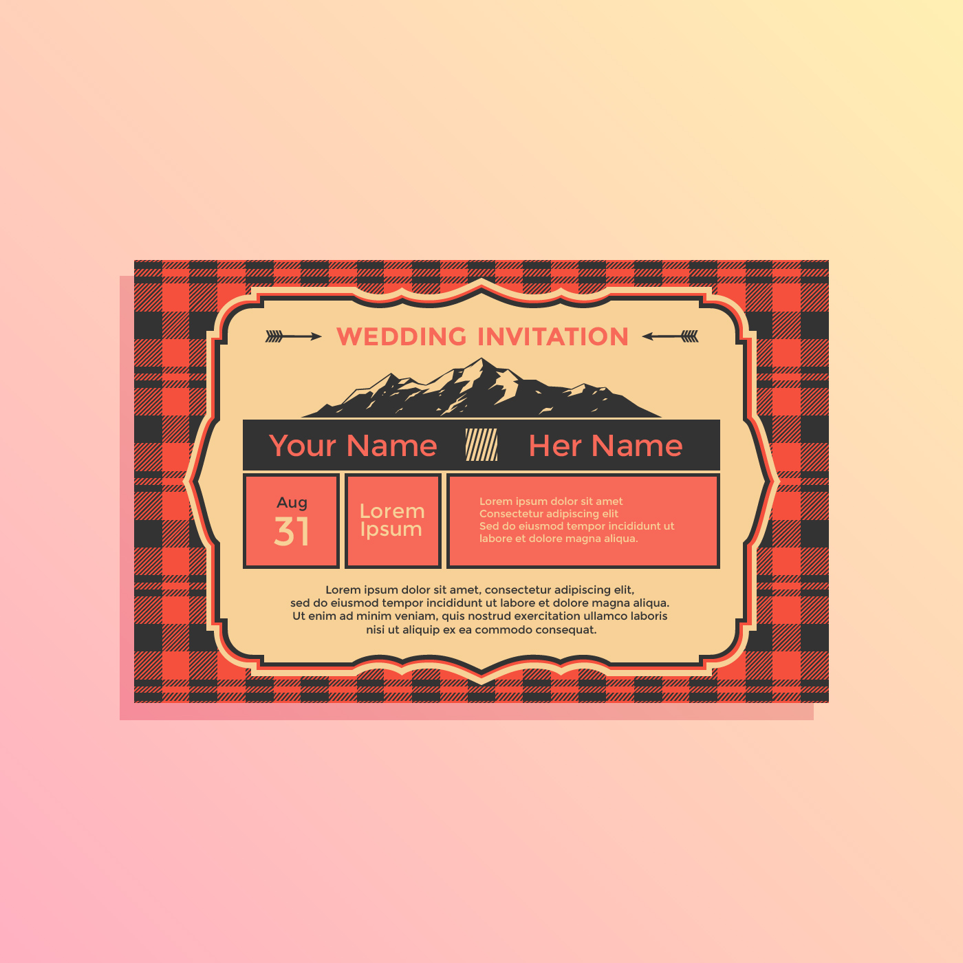 landscape buffalo plaid wedding invitation template vector - Image Credit : www.vecteezy.com